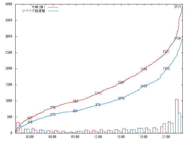 狼は他板の支援や自板票の掘り起こしに成功しニュー速を破り、勢いは最高潮に達していた。 シベリアはVIPを破った実績や、敗退していったニュース系の支援を得られれば対抗出来るであろうと目されていた。 結果は狼が1000表近くの差をつけ今大会得票記録を更新し決勝へと駒を進めることとなった。 狼は前回の実力をそのまま出したのに対し、 シベリアはニュース系の足並みが揃わず混乱が感じられ、思ったより票が伸びなかった印象がある。 ![]() |