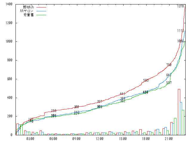 しかし他の2板も負けておらず野球chは1:33:33のラシ