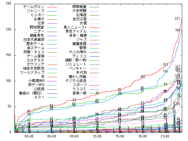将棋、801、ワールドカップ、独身女性限定、ゲーム各板——。