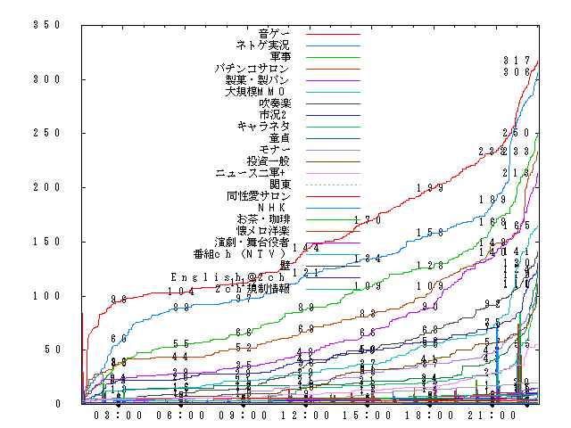 22時頃にネトゲ実況が音ゲーと僅差になるものの、ネトゲ系は大規模MMOも支援に回ったのもあり最終的に音ゲーが逃げ切り勝利