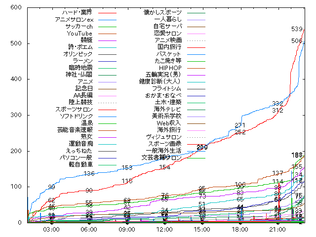 が、アニメサロンexは依然として独走。ここからゲハが少し詰め始める。